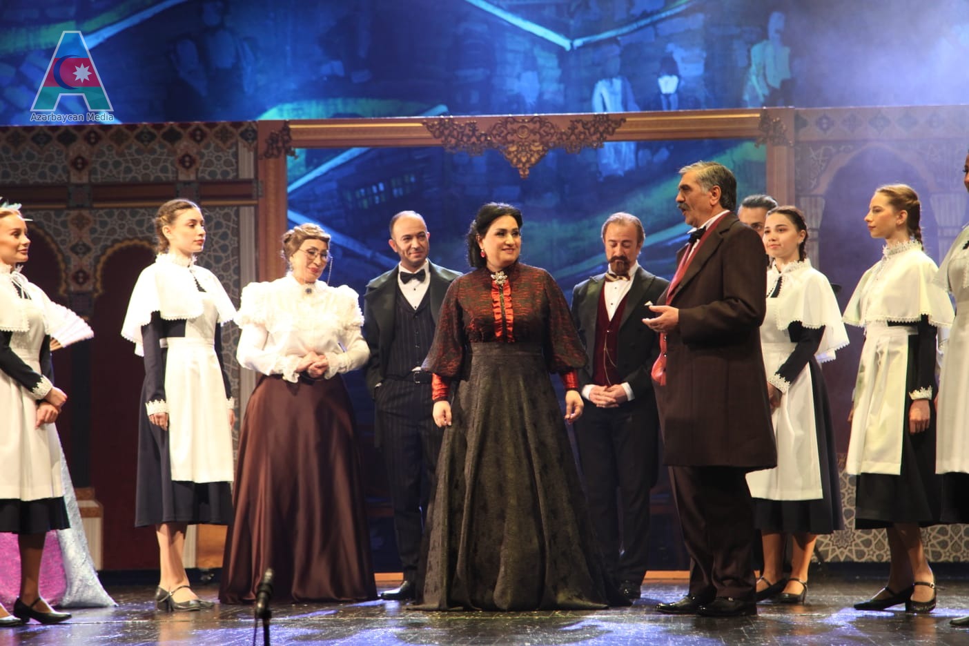 Quruluşçu dirijoru Əməkdar incəsənət xadimi Fəxrəddin Atayev, quruluşçu rəssamı Vüsal Rəhim, quruluşçu baletmeysteri Əməkdar artist Emin Əliyev, xormeysteri Məlahət Qasımova, dirijoru Səməd Süleymanlı, konsertmeysteri Prezident təqaüdçüsü Kamil Həsənov, rejissor assistenti Çimnaz Bağırova olan bu tamaşada Əməkdar artistlər Ələkbər Əliyev, Əzizağa Əzizov, Çingiz Əhmədov, Nadir Xasiyev, Nahidə Orucova, Səidə Şərifəliyeva, Prezident mükafatçısı Səmədzadə Xasiyev, aktyorlar İbrahim Əlizadə, Hüseyn Əlili, Faiq Mirzəyev, Gültac Əlili, Türkel Tariqpeyma, Nərmin Əliyeva, Gülnarə Abdullayeva, Gülnarə Əzizova, Əmrah Dadaşov, Elçin İmanov, Eleonora Mustafayeva, Şaban Cəfərov, Emin Zeynallı, Yuliya Heydərova, Telnaz Hüseynova, Ofeliya Məmmədova, Ayan Qurbanova, Firuzə Cəfərova, İranə Kərimova, Ruslan Mürsəlov, Nəzrin İsmayılzadə, Əli Kərimov, Murad Əliyev, Cəbrayıl Cəbrayılov, Kamil Cəfərov, Tural Məsimov, Cəlal İsayev, Həmid Həmzəyev, eləcə də teatrın xor və balet artistləri iştirak edirlər.